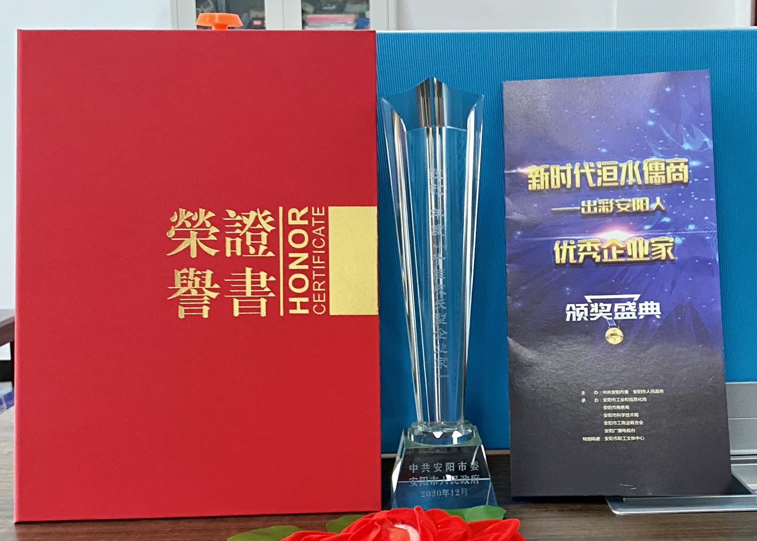 我司董事長鄧明利先生評選為年度“十佳成長型企業家”,榮獲“新時代洹水儒商——出彩安陽人”稱號。